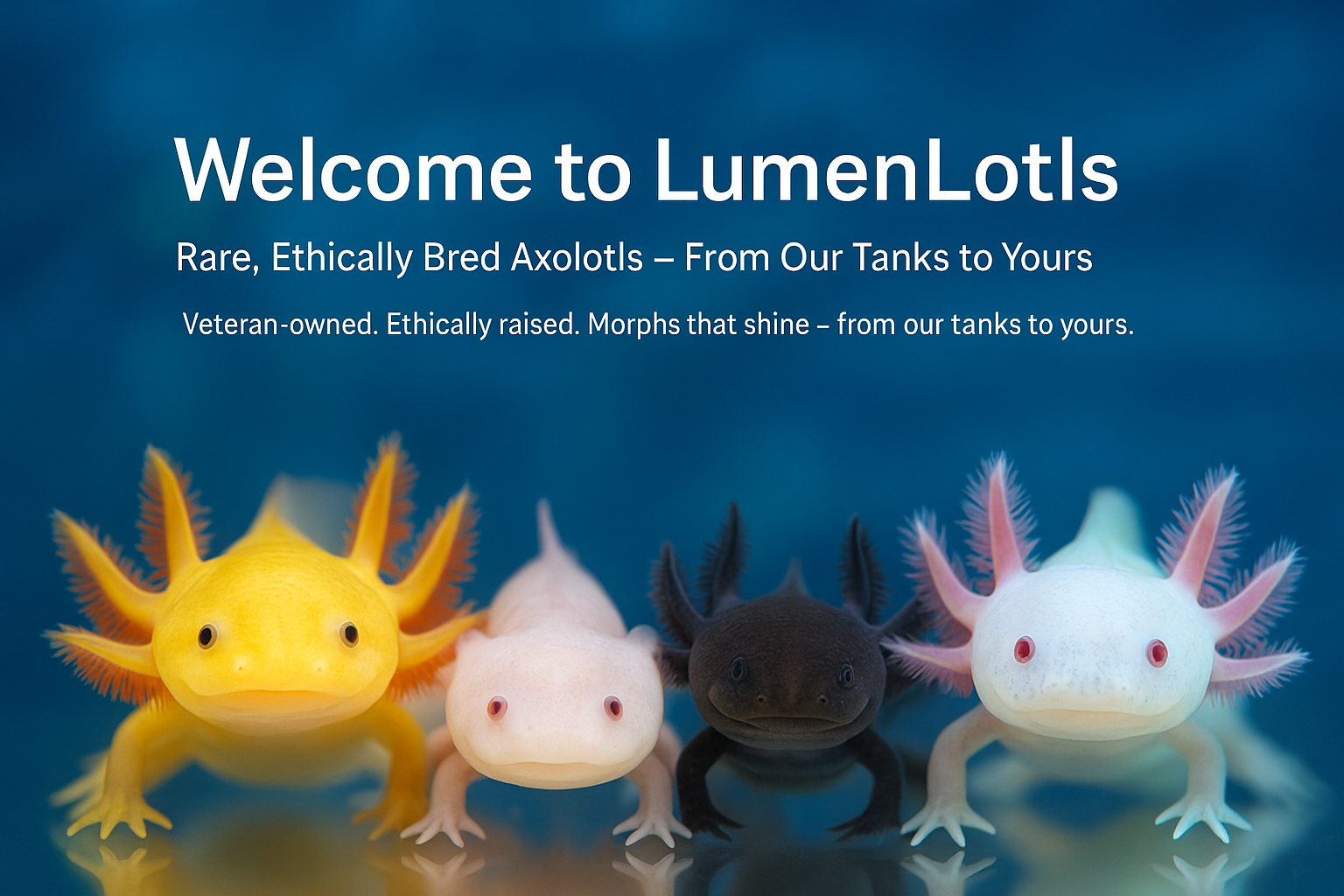 At LumenLotls, we raise axolotls with purpose, not just for profit. As a veteran-owned breeder based in Connecticut, we specialize in rare glow morphs like GFP, Leucistic, and Golden Albino β all raised in clean, stable tanks and fed a premium diet.